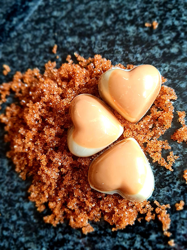 For the lovers of all things caramelized, this bon bon is simply beautiful. Silky, smooth caramel ganache as rich as the white chocolate that envelopes it